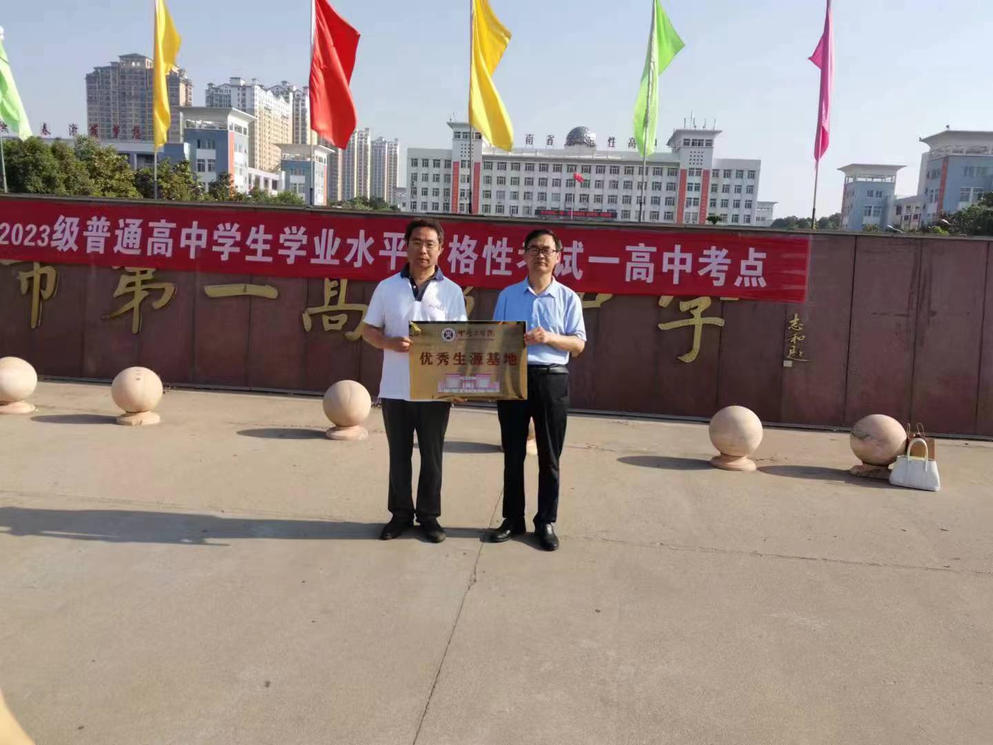 在宣讲会结束后,招生组对两所学校进行了“优秀生源地”授牌仪式。此次邓州市之行,建立了与当地教育主管部门及两所高级中学的良好合作关系,开启了在邓州市招生宣传的大门。后期,邓州招生宣传组将科学谋划,精准发力,切实提高宣传效果,为提升学校生源质量而不懈努力。(通讯员 李志强)