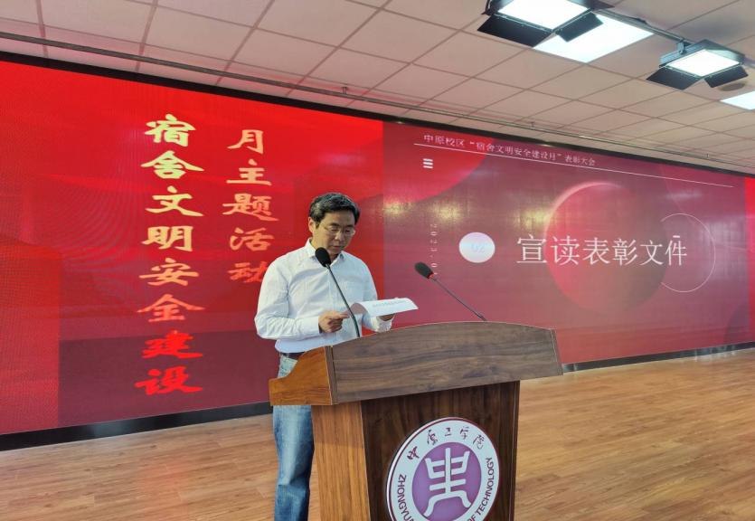 为进一步发挥学生宿舍服务育人、环境育人功能,增强学生安全意识,提升学生文明素养,提高“以评促建”的实效性,积极营造幸福、安全、文明、和谐的宿舍环境,2023年4月13日,中原校区隆重举办了“宿舍文明安全建设月”表彰大会。