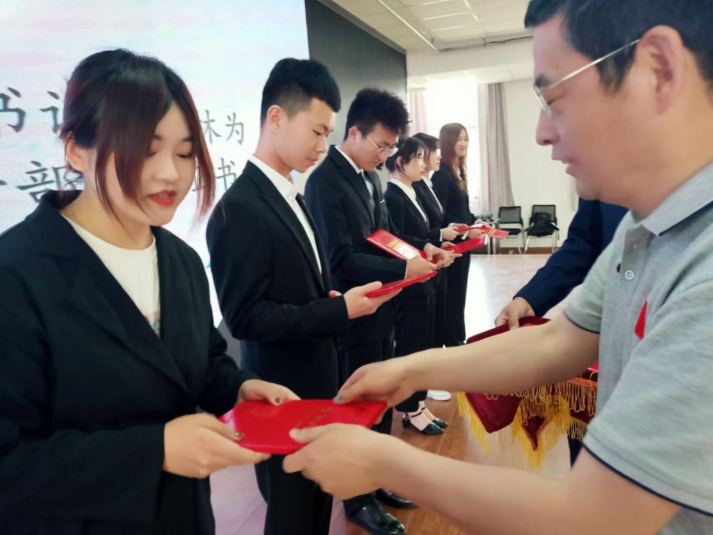 李长林书记为第四届通讯社优秀干部颁发证书,刘冰老师为第五届通讯社负责人颁发聘书。