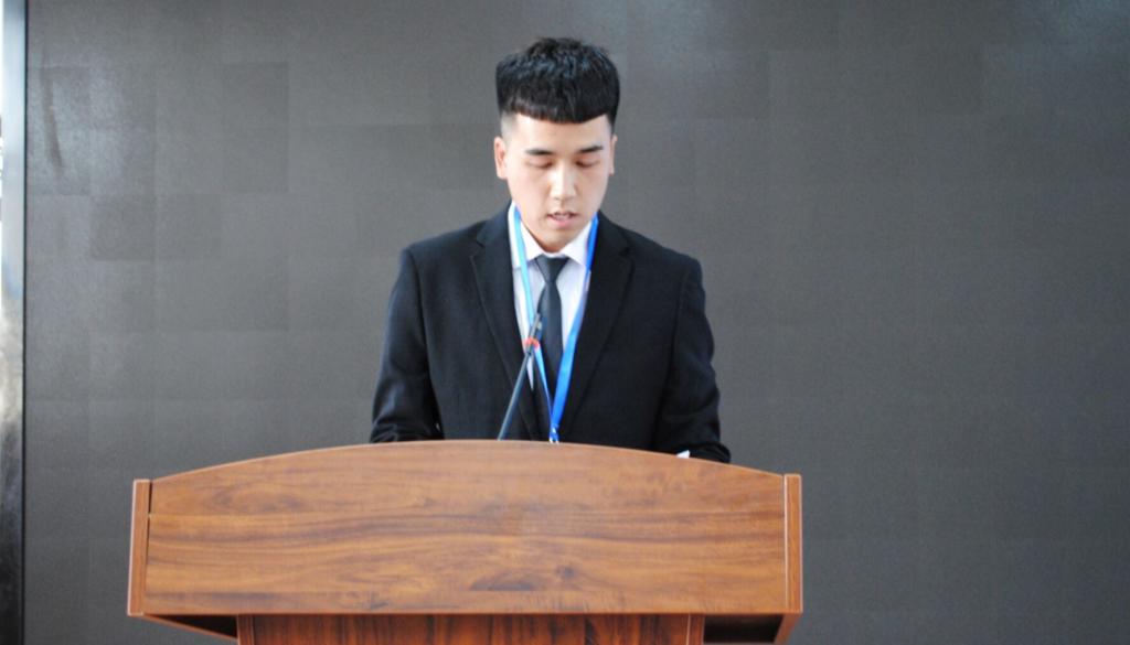 第五届通讯社社长聂仕亮做就职演讲,他表示会履行好自己的职责,提高通讯社成员的整体素质,将通讯社工作做“小”,做“细”,更好的促进学院建设、服务同学。随后,聂仕亮带领新一届通讯社全体成员做就职宣誓。