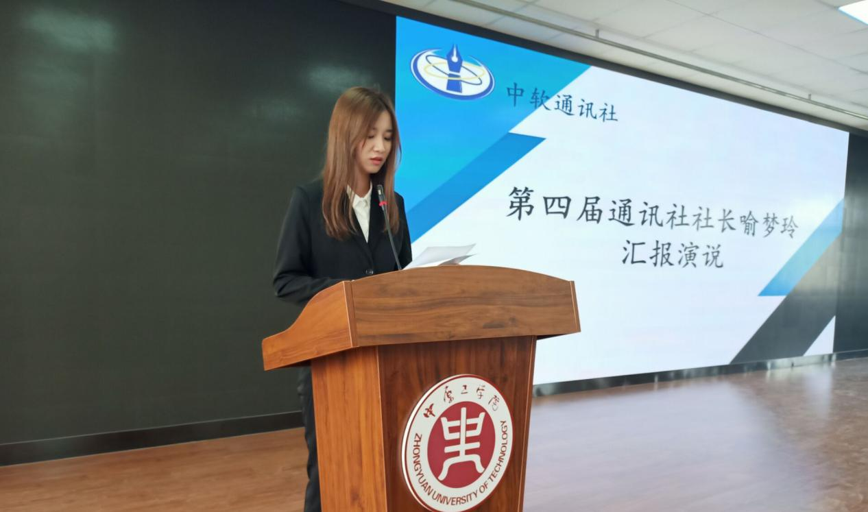 大会在《中工颂》中拉开帷幕,第四届通讯社社长喻梦玲做述职汇报,她发表了自己在通讯社工作中的感悟,希望新一届通讯社成员能够将“化身为形,叩击人心,化笔为锋,篆刻中软,不忘初心,有始有终”的理念贯彻到底。