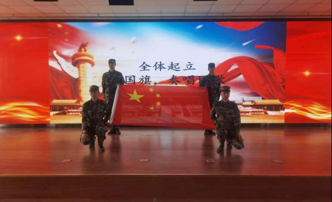 仪式伊始,全体起立奏唱国歌。现任国旗护卫队队长张喜皓上台述职,总结汇报了上一届国旗护卫队的工作成绩与不足,并对20级新队员的加入表示欢迎,希望20级队员将敢于挑战、勇于担当的国护精神传承下去。
