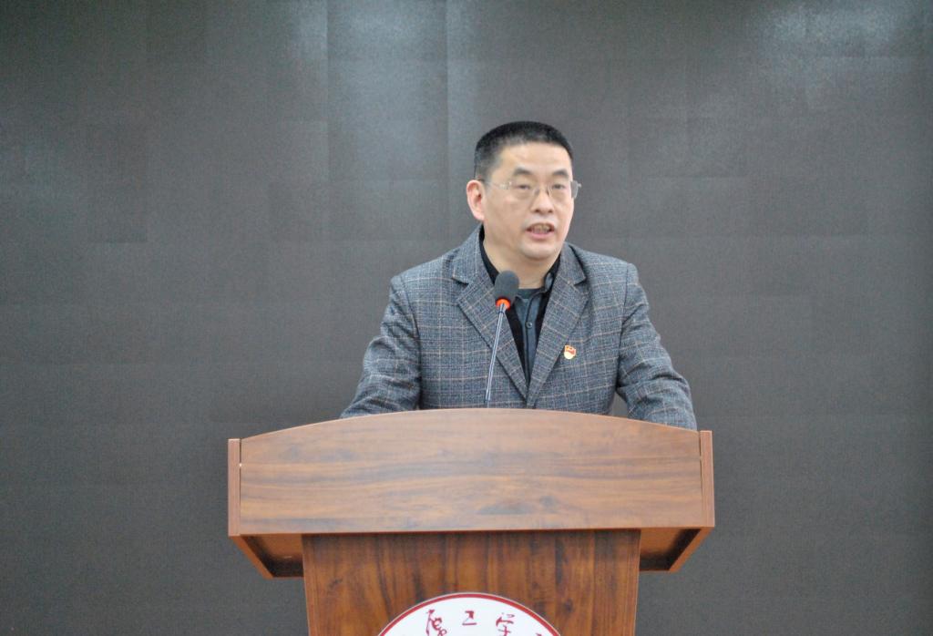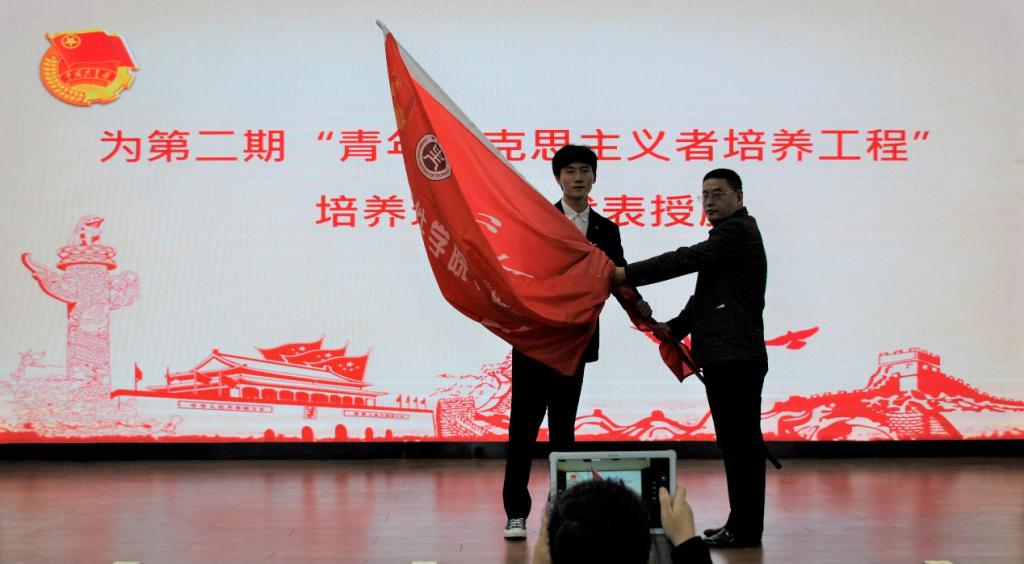 院党委书记李长林为第二期院“青马班”授旗并发言,李书记回顾了党的发展史,讲解了开设青马班的目的,即青马班用马克思理论武装青年,培养社会主义接班人。同时,李书记用“集体与个人结合”、“专题学习与阅读原著结合”、“青训班培训与课堂学习相结合”三个结合表达了对同学们的期望,希望同学们善于思考,勇于实践,学思用贯通、知信行统一。