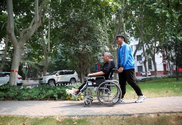 午后的阳光,正暖。随后,家宝把父亲搬到了轮椅上,从宿舍推出来,到外面晒晒太阳。