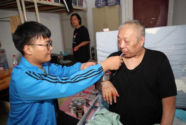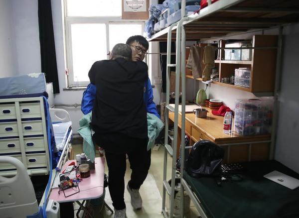 除了学业,家宝把自己的精力都放在照顾父亲上,每天给父亲翻身、按摩,是他的“必修课”。