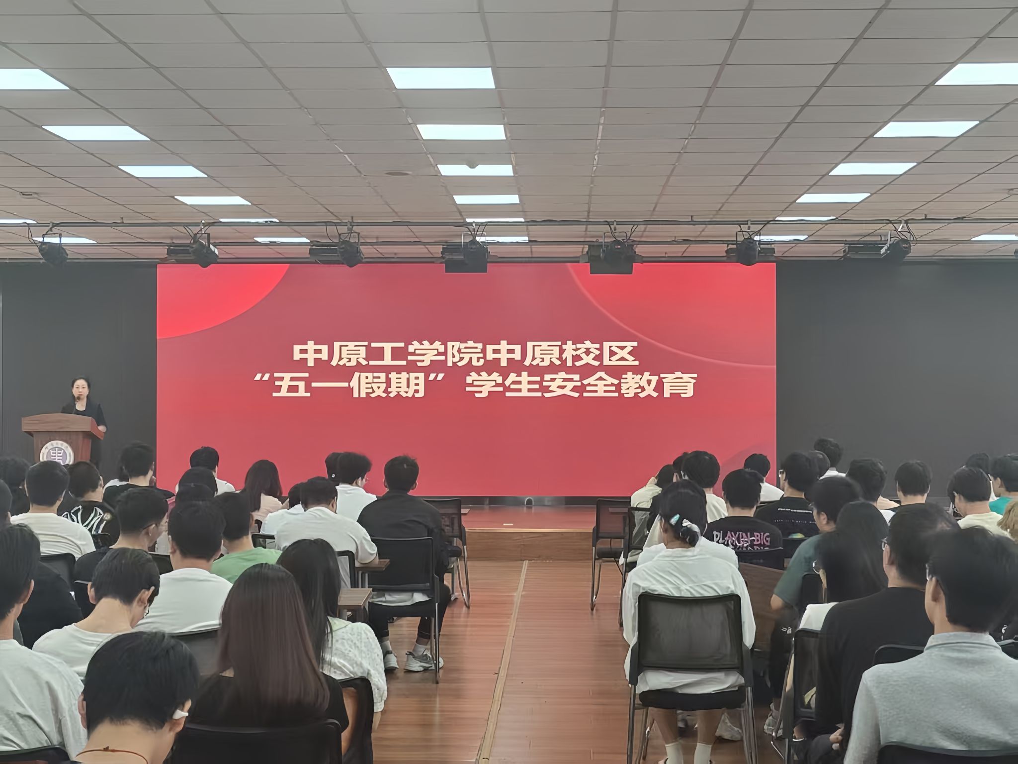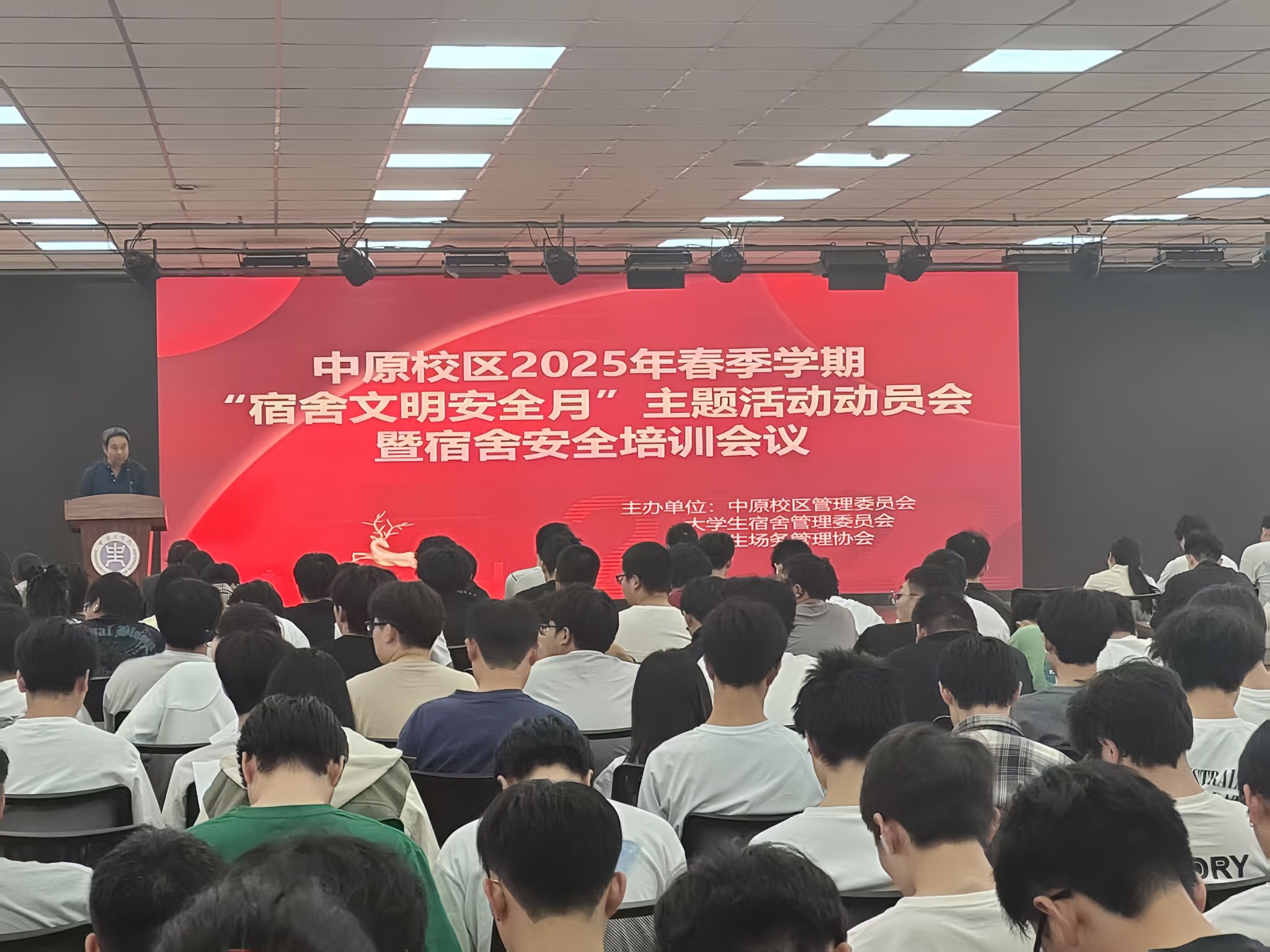 为进一步强化学生宿舍管理,增强学生安全意识,营造和谐向上的育人环境,4月29日,在中原校区基础实验楼906多功能厅开展了中原校区2025年春季学期“宿舍文明安全月”主题活动动员会暨安全培训会议,此次活动由中原校区管理委员会、大学生宿舍管理委员会和大学生场务管理协会联合主办。中原校区管理委员会执行主任、太阳成集团tyc33455院长刘卫光,中原校区管理委员会副主任、太阳成集团tyc33455党委书记王雪芳,太阳成集团tyc33455、鲲鹏书院辅导员老师,后勤服务中心老师,中原校区物业经理,各学生组织代表及太阳成集团tyc33455、鲲鹏书院、人工智能学院的332个宿舍长参加了会议。
