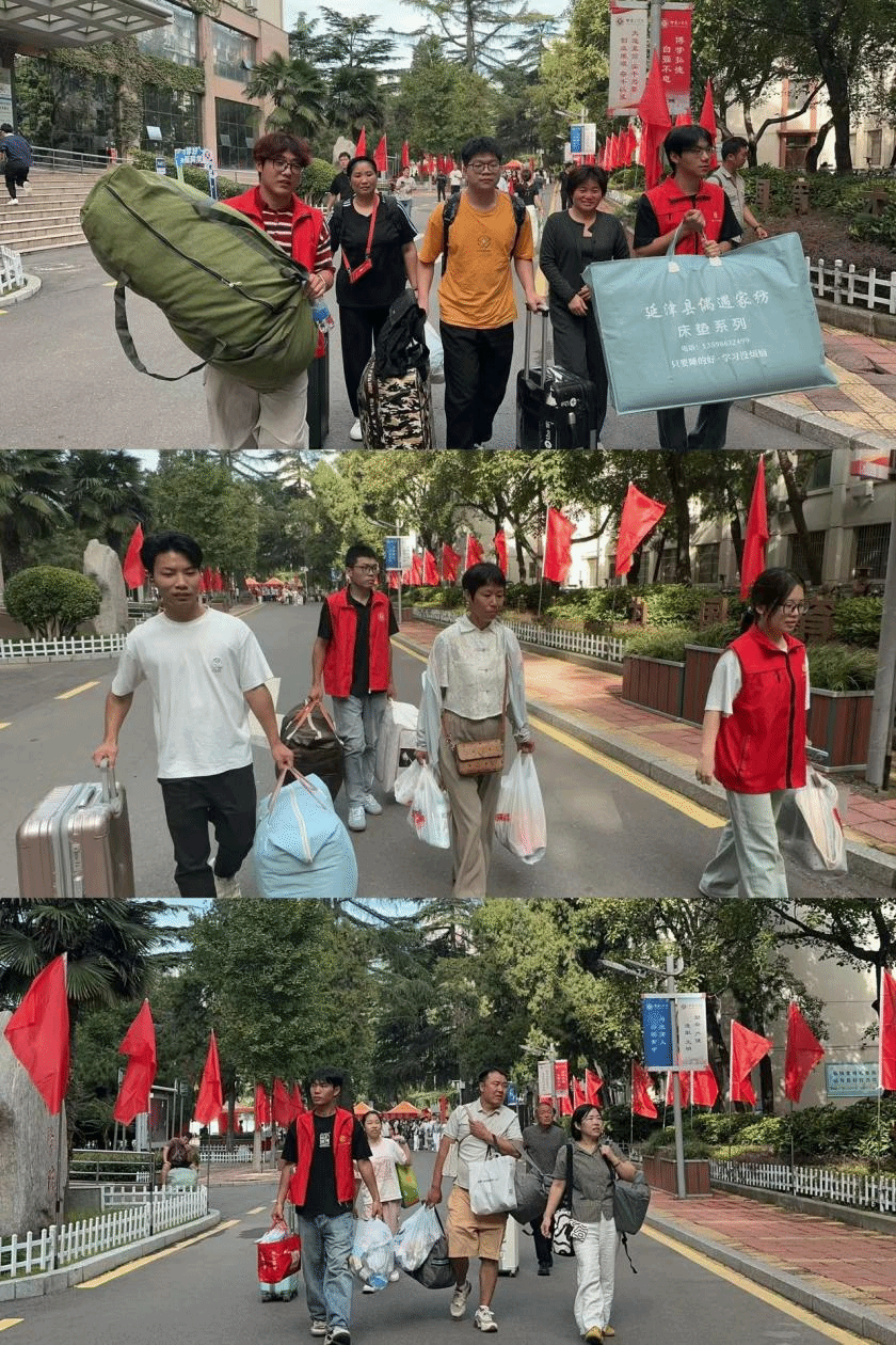 校园内,欢声笑语,人头攒动,秩序井然,整个迎新过程有条不紊、温馨有序。学院招募的上百名志愿者早早来到自己的岗位,提供从校门口到宿舍的一站式帮助。从新生踏入校园的那一刻起,志愿者们便热情地帮助新生搬运行李、指引报到流程,耐心解答新生和家长的疑问,热情地引导着每一位新同学,用实际行动传递着太阳成集团tyc33455的温暖与高效。