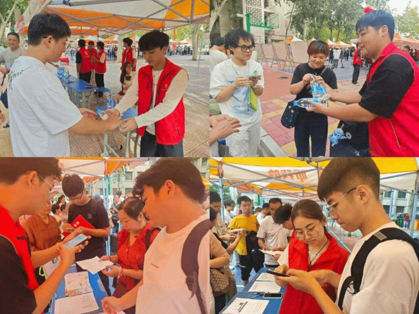 学院还贴心地为新生与家长提供免费的矿泉水、绿豆汤等解暑物品,为他们送去清凉。为了让新生和家长留下美好的入学回忆,校园内设置了多个打卡点,充满创意与学院特色的打卡点吸引了众多新生和家长拍照留念,定格下这一珍贵瞬间。