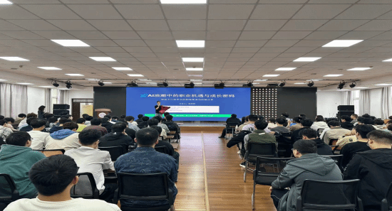 同时,在基础实验楼大学生活动中心,我院软件工程专业2013届毕业生陈朋辉结合自身丰富的职业发展历程,分享了AI浪潮下的职业机遇和成长密码,阐释了扎实的专业基础、严格的自律精神和持续学习能力在应对复杂挑战中的关键作用,鼓励同学们勇于挑战,持续投入。两场讲座座无虚席、气氛热烈,互动环节中针对在校生的提问,校友们均进行了耐心详尽的解答。