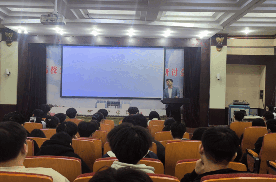 座谈结束后,两场校友讲座同步开讲。在中原校区图书馆报告厅,我院2009届软件编码专业毕业生杨玉山以“承中工薪火,赴科创征程——一名软件学子的成长与金融科技实践”为题,讲述了自己如何不断学习新知识、面对新挑战、迈进新领域的心路历程,鼓励同学们以专业为基、以创新为翼,传承母校精神,在科创路上勇毅前行。