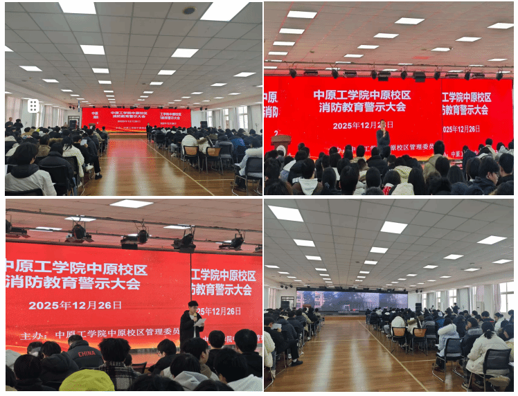 为切实加强在校学生消防安全教育,提升学生的自救自护能力,筑牢校园安全防线,12月26日,在基础实验楼906多功能报告厅,中原校区管理委员会组织开展校区消防安全教育警示大会。中原校区管理委员会负责人、各学院学生负责人、后勤服务中心负责老师及校区200余名学生参加了会议。