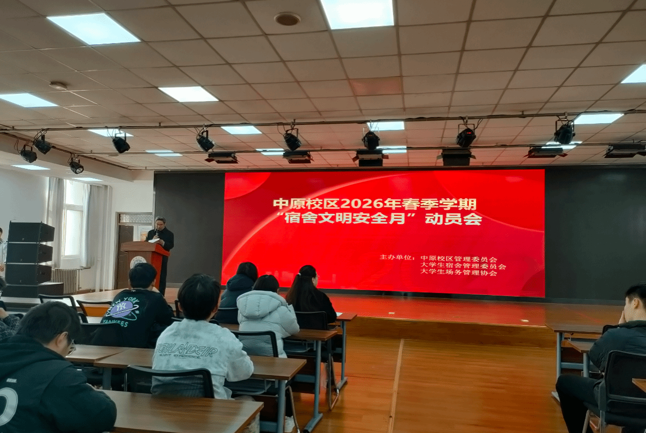 此次会议标志着中原校区2026年春季学期“宿舍文明安全月”主题活动正式启动,为进一步强化学生安全意识、营造安全和谐的宿舍环境奠定了坚实基础。