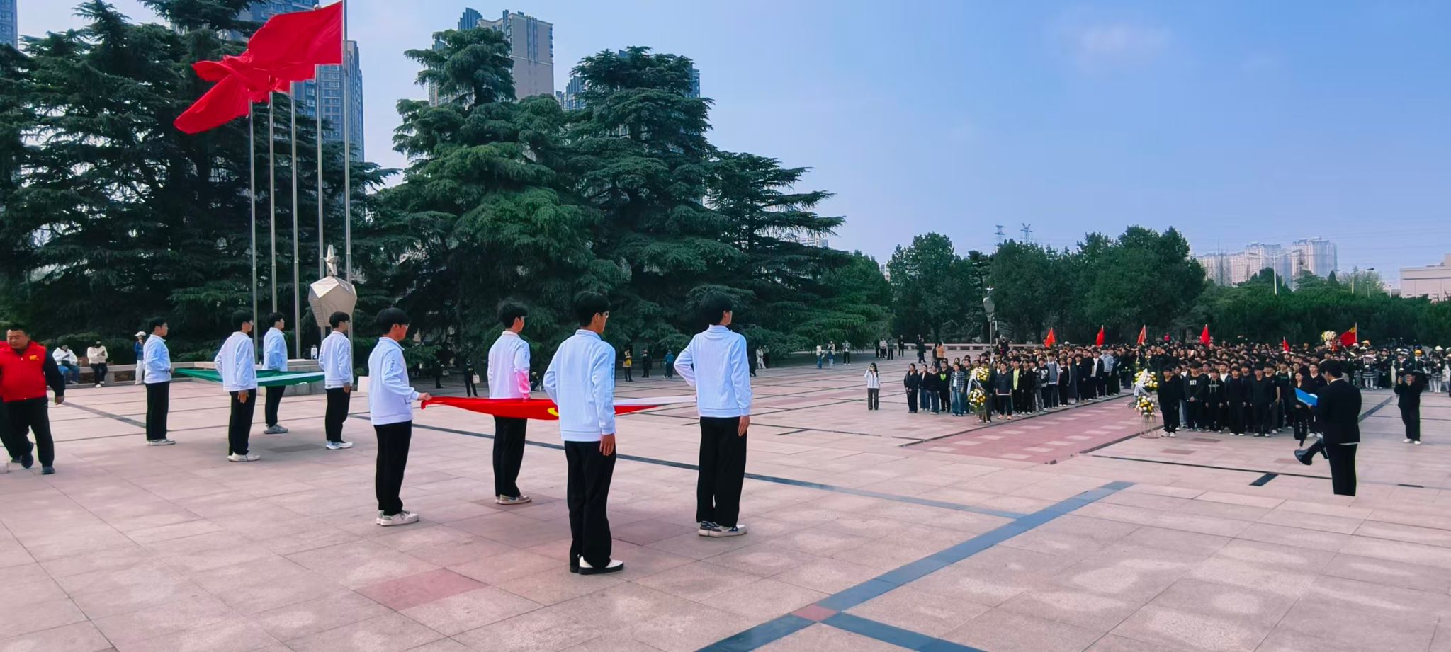 深切缅怀革命先烈,传承红色基因。2026年清明节前夕,太阳成集团tyc33455、鲲鹏书院组织近150名师生党员、入党积极分子以及青马班成员,前往郑州市烈士陵园开展主题党日活动。师生们以实际行动致敬革命先辈,厚植家国情怀。