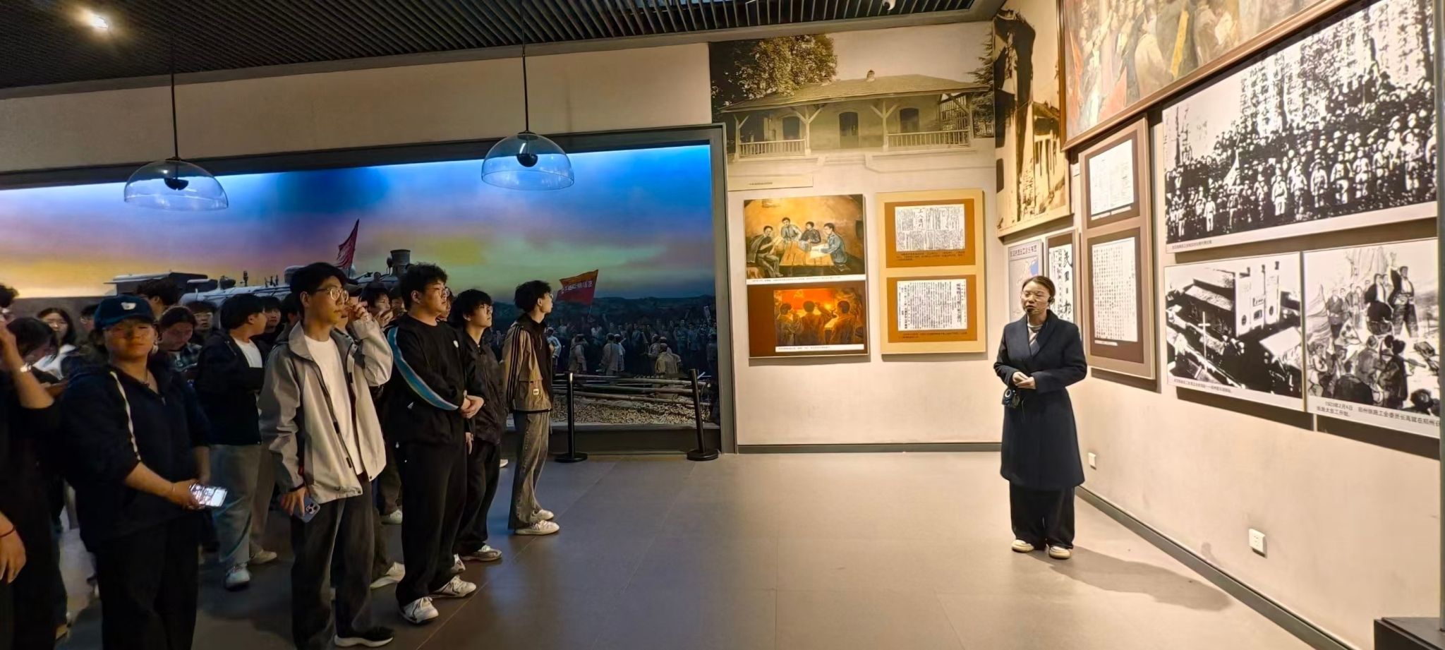 仪式结束后,师生们共同参观了中原英烈纪念馆。馆内的历史照片、珍贵文物以及景观复原等场面生动再现了革命先辈在中原大地浴血奋战的峥嵘岁月。从抗日战争时期的英勇阻击,到解放战争中的奋勇冲锋,每一件文物都承载着一段可歌可泣的历史,每一张照片都凝聚着先烈们的赤诚初心。师生们驻足凝视、认真聆听,在红色历史中接受深刻的精神洗礼。