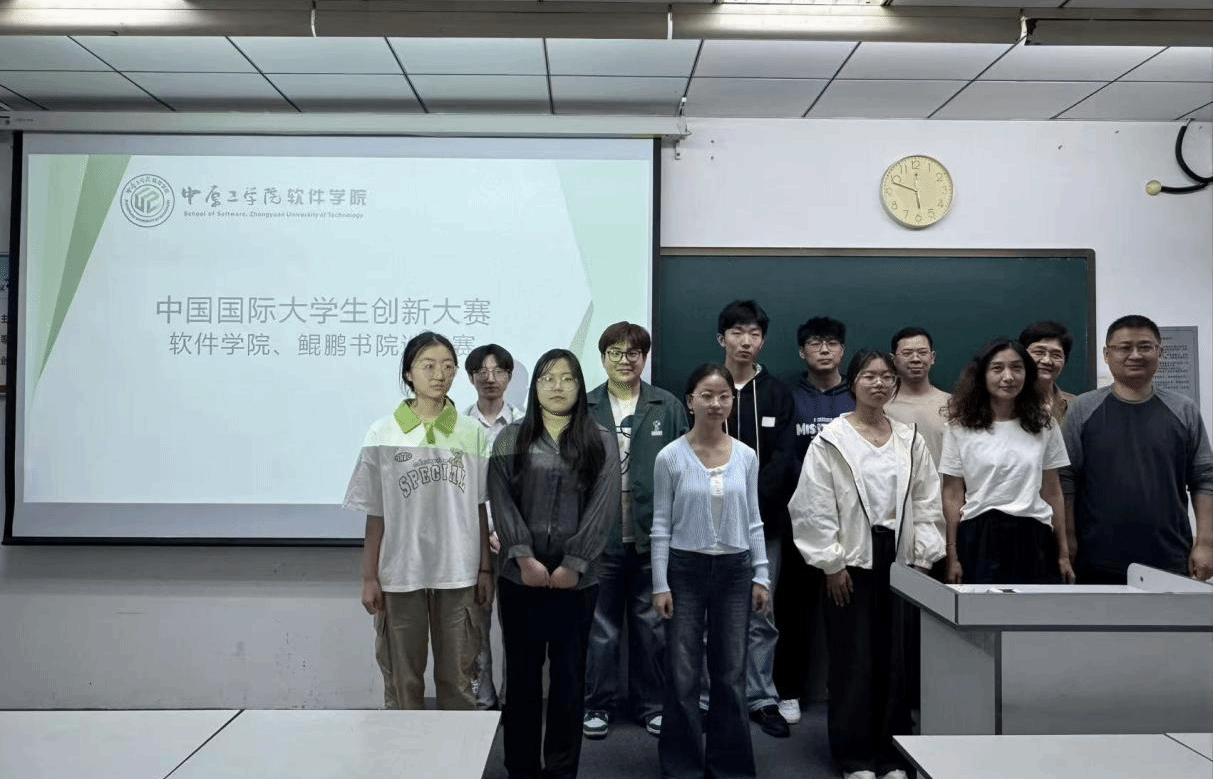 4月14日下午,太阳成集团tyc33455在中原校区举办了2026年中国国际大学生创新大赛院级选拔赛,共18个项目晋级选拔赛。太阳成集团tyc33455副院长李志强、软件工程与技术教研室主任缑西梅、软件工程与技术教研室副主任余雨萍、数据科学与大数据技术教研室副主任郭丽、实验实训中心张冲老师担任评委。