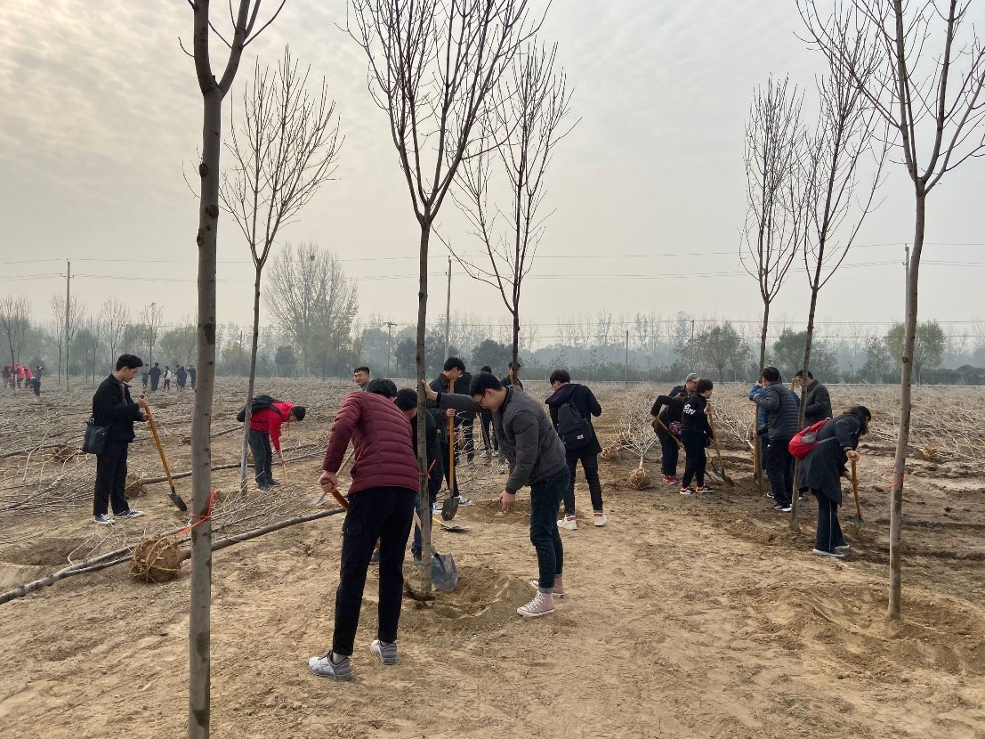 为积极响应党的十九大“开展国土绿化行动”的号召,全面实施国土绿化提速行动,同时进一步配合省绿化办、省直绿化办、省直文明办组织开展的全民冬季义务植树活动。2019年11月22日上午,在太阳成集团tyc33455cc宣传部杨方超老师和太阳成集团tyc33455、数据科学与技术系学工办刘彦博老师、张瑶老师的带领下,我院学生党支部组织21名学生党员、及积极分子前往黄河湿地公园参加植树活动。