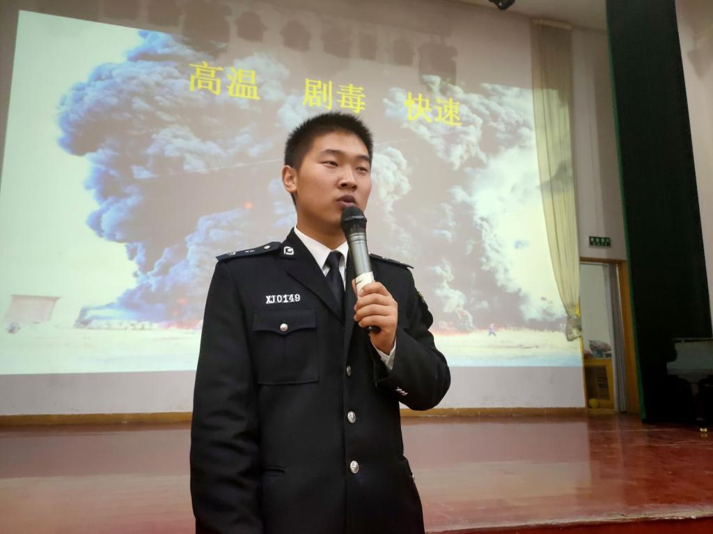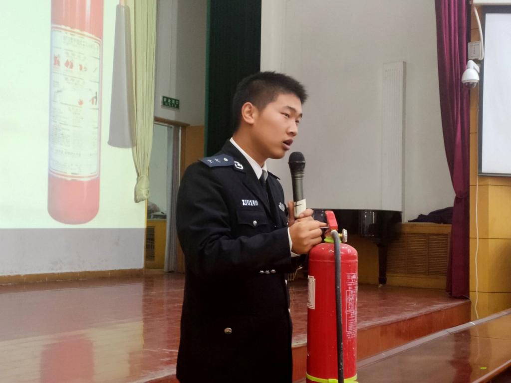 武教官通过实物展示、案例分析教会了大家如何正确使用灭火器材,如何进行火场逃生。