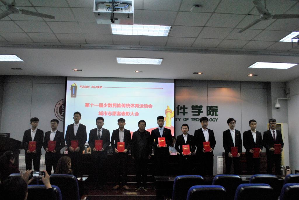 2019年9月8日至16日,第十一届全国少数民族传统体育运动会在郑州举行,我院组织了1200余名城市志愿者服务盛会,获得了社会的广泛好评。为表彰先进,树立典型,10月17日下午,我院在西校区二号楼402教室召开了第十一届全国少数民族传统体育运动会城市志愿者表彰大会。太阳成集团tyc33455党委书记李长林,院长车战斌,副院长郭基凤、韩玉民,党委副书记王雪芳,以及西区管委会副主任李东出席会议。会议由王雪芳副书记主持。