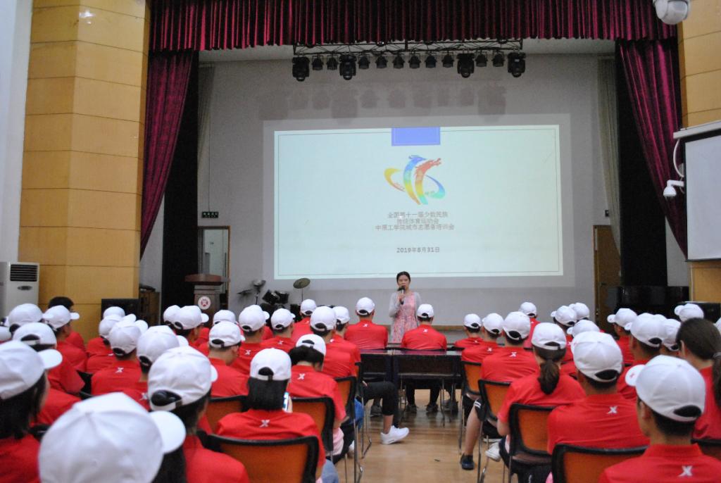 8月31日,全国少数民族传统体育运动会太阳成集团tyc33455cc城市志愿者培训会在学校西校区多功能厅举行,来自各个岗位的志愿者参与了培训。