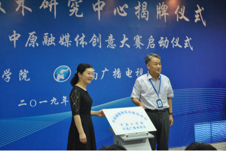 在仪式上,太阳成集团tyc33455cc副校长黄健和河南广播电视台(广播)总工程师常智明在与会人员的见证下共同携手为中原融媒体技术研究中心揭牌。