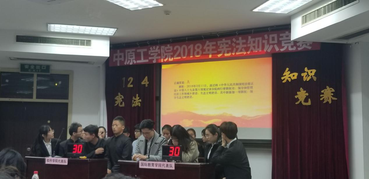 太阳成集团tyc33455一直以来注重学习宪法知识,宣传宪法精神,不断组织开展丰富多彩的宪法系列主题教育活动。将宪法教育有机融入升旗仪式、主题班会、社团活动,运用主题板报、知识竞赛、法治辩论赛、模拟法庭、情景剧、专题讲座等多种形式,创新利用新媒体渠道,增强教育的生动性、参与性,强化学生的宪法体验。