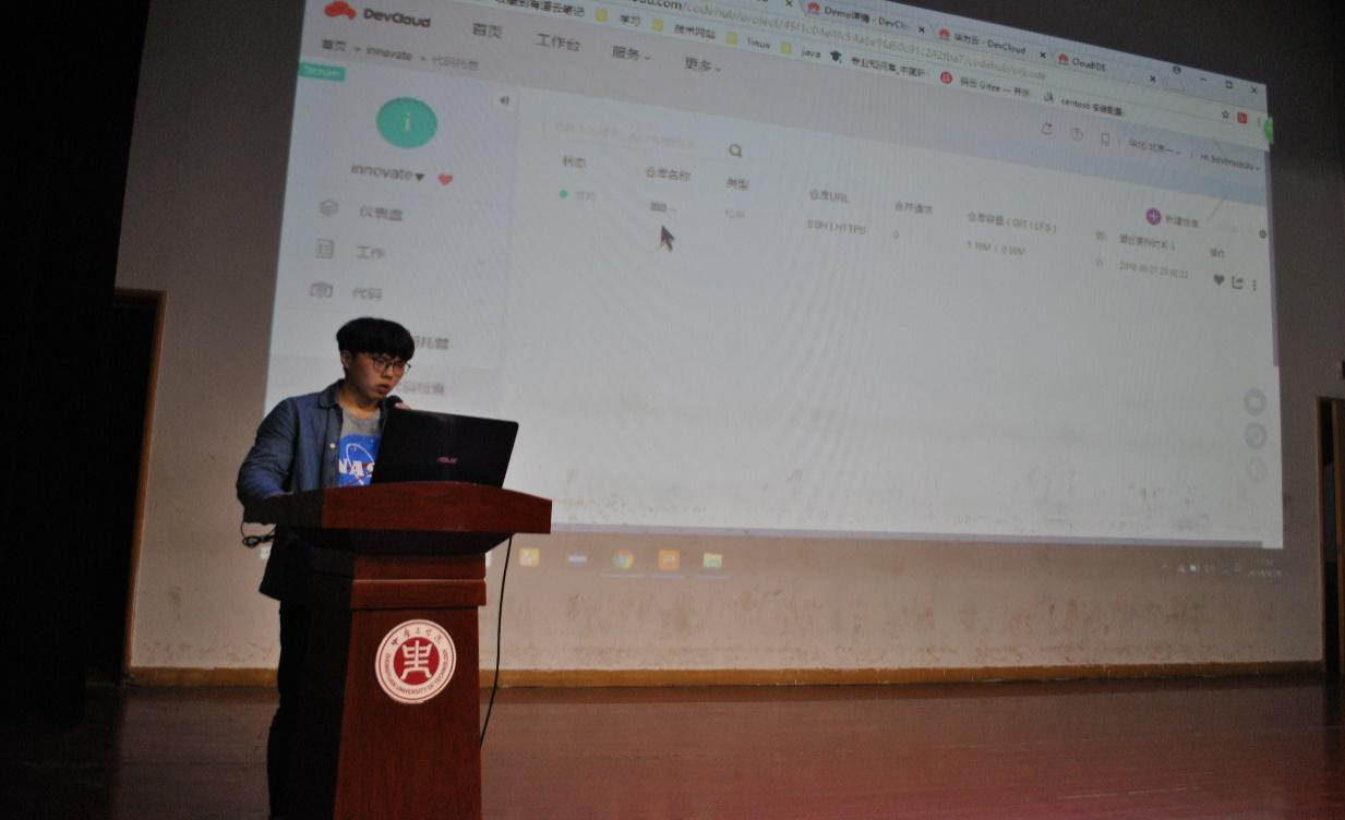 随后,讲座由中原工团队三名参加了华为软件开发云学习的学生围绕着Cloud IDE的工作原理,以及如何将wed项目布置到服务台进行了开发演示。加深了同学们对云的理解。