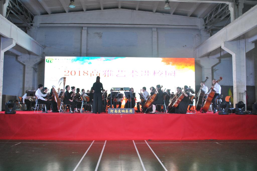 2018年9月19日下午4点30分,“高雅艺术进校园”―――河南省交响乐团专场音乐会在我院室内体育馆隆重举行,给我院广大师生带来了一场中西结合的交响乐艺术盛宴。交响乐团的艺术家们把代表人类优秀文化成果的艺术作品送进校园,让大学生走近高雅艺术,丰富了校园文化生活,提高学生艺术修养,促进大学生全面发展。