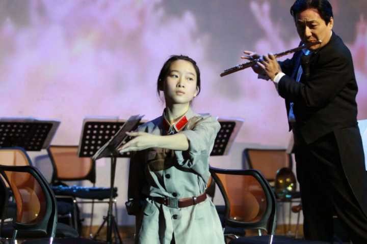 董世英先生的登场将演奏现场带入了一个新的高潮,他以高超的技艺、充沛的情感将《西班牙斗牛曲》、《难忘的故事》完美的呈现给观众,演奏结束后,现场掌声久久不落。继而,董世英先生与我院17届学生合作一曲《映山红》,长笛和舞蹈的完美结合,娴熟的技巧、深情的舞蹈赢得了同学们热烈的掌声。