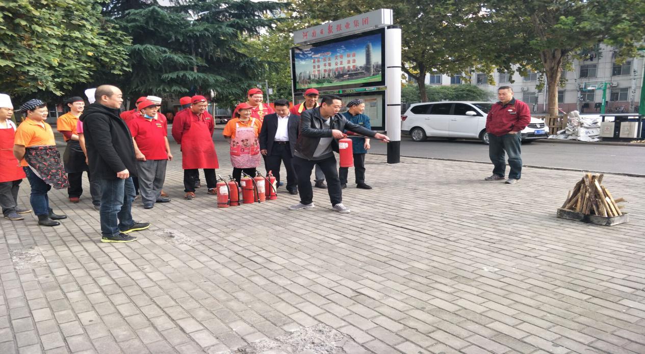 为了增强消防意识,防患于未然,一年一度的餐厅消防演练于2017年10月23日上午九时于餐厅举行,本次消防演练主要针对餐厅全体后勤工作人员。9时所有餐厅工作人员聚集在餐厅门外,认真听取保卫处刘津航老师的讲解。在刘津航老师的指导下,餐厅工作人员用灭火器将火扑灭。