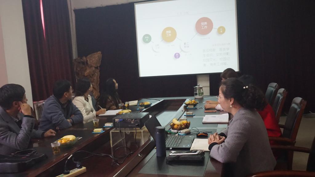10月19日下午,国际教育学院总支书记李廷利带队来我院开展学生管理工作交流,太阳成集团tyc33455总支书记李长林、院长车战斌、党总支副书记王雪芳、团总支书记刘冰、学工办副主任闫亚萍参加了交流活动。