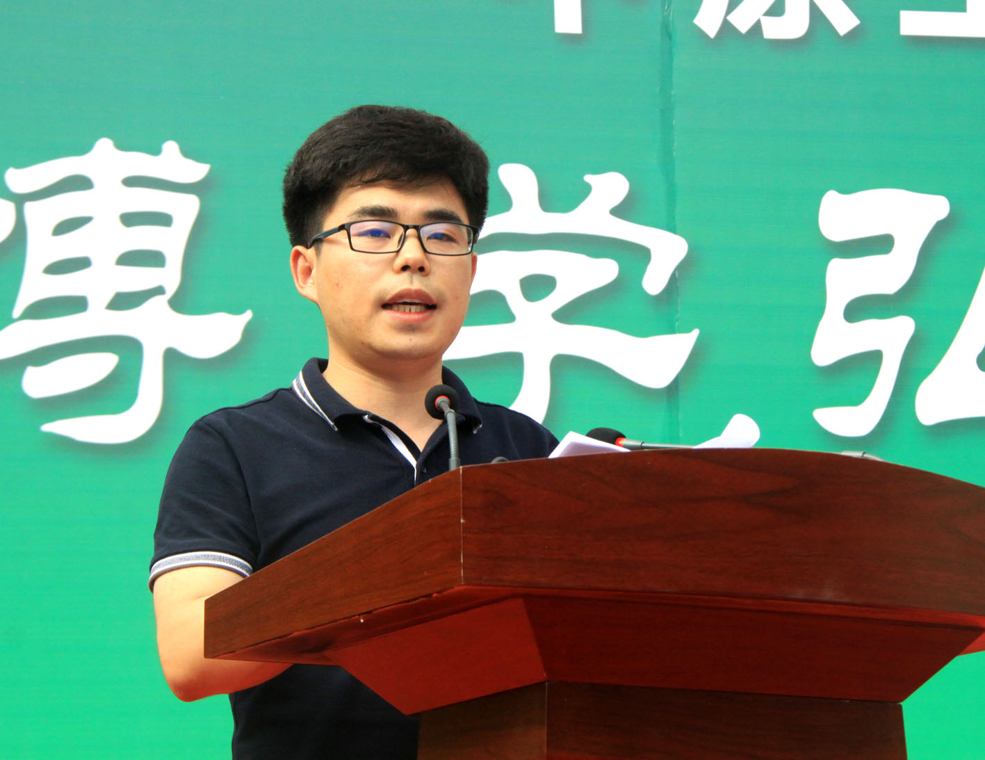 我院2010级毕业生,宝德科技集团股份有限公司、河北省总经理、刘志远校友发言。他就自己大学期间的美好记忆及毕业几年来的所见所闻提出了自己对大学生活的理解,鼓励所有同学们逆流而上、不断进取,同时表达了对于师长们的满怀感激及母校的深深眷恋。