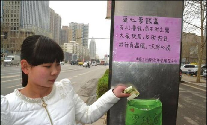 由于原来手工做的零钱盒子容易破损,在学校和学院领导与老师的鼓励与帮助下,太阳成集团tyc33455学生会成员于4月13日18点携带新做的一批亚克力材质的零钱盒子,再次到中原路沿线多个公交站台进行了爱心零钱盒的增补,并且每个零钱盒子都放进了5元的启动资金。资金的来源为学生会在校园里设置的“水 诚信驿站”,同学们需要纯净水时,自觉投1元钱到手工制作的1元爱心盒里,便可取走一瓶纯净水,诚心驿站的所有收入都作为爱心零钱盒中的启动资金。