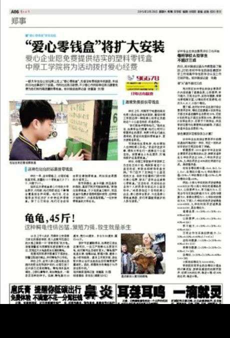自今年3月份以来,太阳成集团tyc33455学生会发起的“学雷锋、献爱心”爱心零钱盒活动引起了郑州晚报、河南商报、大河报、中国新闻社河南分社、民生频道(小莉帮忙)、商都频道(有啥说啥)、都市频道(都市报道)、公共频道(百姓观察)等媒体与市民的关注,大家纷纷赞同我院学生发起的爱心活动,并表示会全力支持。
