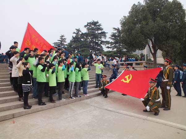 活动在浓烈的爱国氛围中拉开了序幕。首先,我学院党员及预备党员在烈士碑下宣读入党誓词,铿锵有力。同学们怀着对先烈的敬重之情,在老师的带领下拜谒了吉鸿昌英雄墓,并向烈士们深深弯腰鞠躬来表达沉痛的哀悼。紧接着,同学们秩序井然的参观了烈士陵园。在一个个的墓碑前,同学们纷纷驻足瞻仰、默哀。最后,同学们默默献上自己做的小白花,用最传统的方式向为了革命而牺牲的英雄烈士表达自己无限的敬意和哀思。