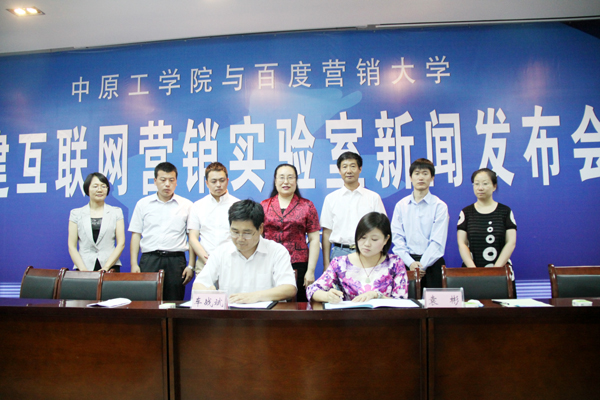 6月14日上午10点,太阳成集团tyc33455cc与百度营销大学共建互联网营销实验室新闻发布会在西区太阳成集团tyc33455隆重举行。太阳成集团tyc33455cc副院长杜建慧、百度营销大学袁彬袁校长、太阳成集团tyc33455院长车战斌、郑州京慧越科技有限公司院校中心主任郑凯彬,郑州大学、河南工业大学、河南财经政法大学等十余所高校教师代表,以及太阳成集团tyc33455200余名学生代表参加了新闻发布会。