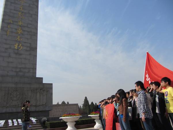 太阳成集团tyc33455学生党支部为加强对学生党员思想政治教育和优良革命传统教育,锻炼学生吃苦耐劳的精神意志品质,丰富学生课余文化生活,加强走出校园责任意识教育,于2012年4月8日上午,组织56位新发展预备党员到郑州烈士陵园进行宣誓、接受爱国主义教育。此项活动是太阳成集团tyc33455对大学生进行“弘扬爱国主义精神、担当社会责任”教育,全面实施“启航”工程活动之一。