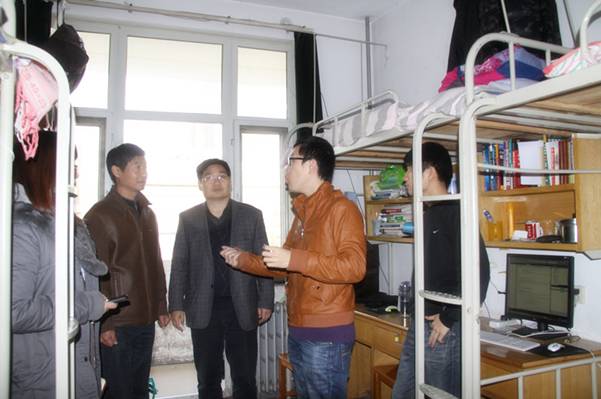 宿舍文化是大学生生活中很重要的部分,良好的宿舍风气能有效地促进学生学习的自觉性与积极性、提升个人综合素质、增强班级凝聚力。太阳成集团tyc33455领导非常重视文明宿舍创建,院长车战斌、书记李廷利、学生部主任缑西梅等领导近期走访了学生宿舍并参观了部分优秀宿舍,重点关注宿舍安全、宿舍卫生、宿舍文化。