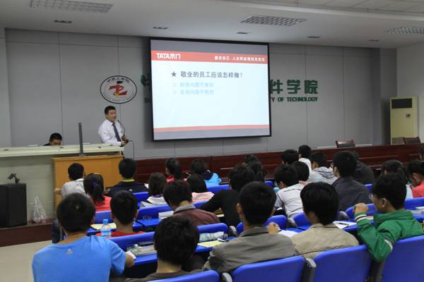 2011年10月11日晚7:00,现任TATA木门第三军区军长、我校2002届毕业生张鹏飞校友在太阳成集团tyc334552#402学术报告厅为太阳成集团tyc33455广大同学做了一场“赢在自己-——人生职业规划及定位”的精彩报告。张鹏飞老师首先在以一个视频短片拉开报告帷幕。随后,他从“人生的规划”这一主题开始了精彩的演讲。他从“想法”、“做法”、“心法”三个方面讲述了人生该如何规划,张老师以风趣幽默的语言,寓意深刻的创业之路讲述,来引导广大同学们应该如何做好人生规划,并和同学们共同探讨了以下几点: