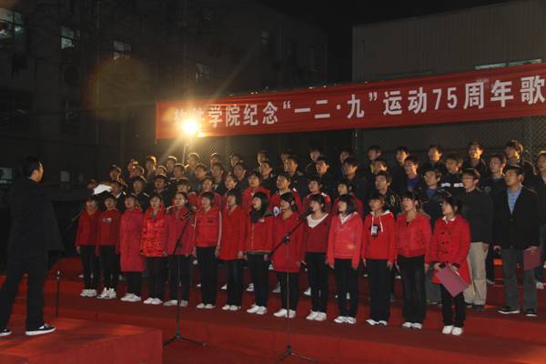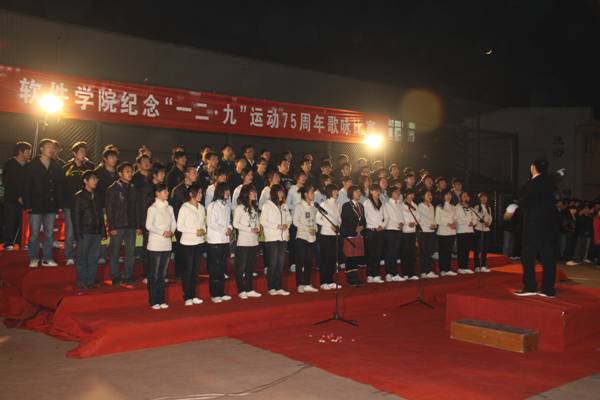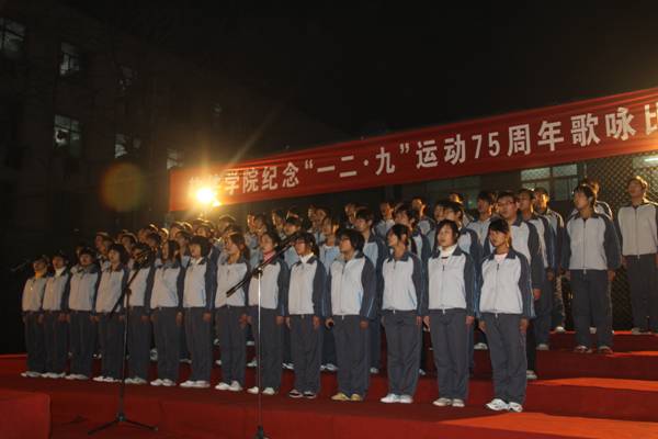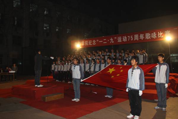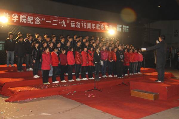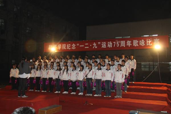 12月9日晚18:30,为纪念75年前发生在北平的大中学生数千人在中国共产党的领导下举行的抗日救国示威游行,反对华北自治,反抗日本帝国主义的爱国运动,我校西校区太阳成集团tyc33455隆重举行了大型唱红歌歌咏比赛。