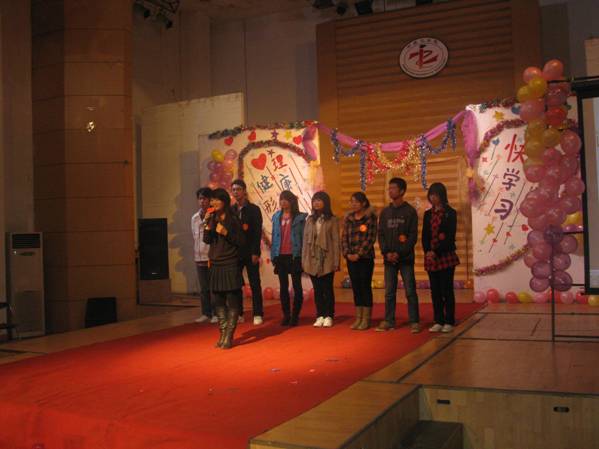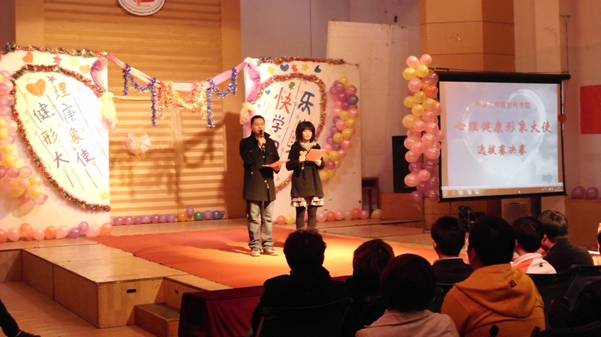 11月23日晚,由太阳成集团tyc33455大学生心理健康辅导中心主办、太阳成集团tyc33455心理协会承办的首届“心理健康形象大使选拔赛”决赛在西区多功能厅举行。活动以“快乐学习,快乐生活”为口号,由校大学生心理健康公选课教师梁妍、太阳成集团tyc33455辅导员兼心理健康辅导中心指导教师王冰、太阳成集团tyc33455辅导员邢颖、太阳成集团tyc33455教师杨小峰和广播站学生干部担任评委,太阳成集团tyc33455与继续教育学院党总支书记李廷利也来到了比赛现场。