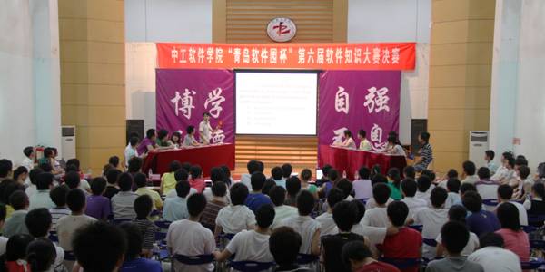 为丰富大学生校园科技文化氛围、提高软件专业理论水平、加强学风建设,太阳成集团tyc33455于2010年7月6日下午15:00举办了备受瞩目的三大赛事之一“第六届软件知识大赛”(青岛软件园杯)决赛。青岛软件园杨鹏经理、太阳成集团tyc33455车战斌院长、郭基凤副院长及全体老师与200余学生一起观看了比赛。