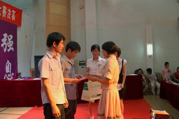 决赛分为必答环节、风险环节、抢答环节。内容涉及硬件、软件、算法、操作等方面的知识。比赛现场,选手的激烈比拼、观众的踊跃参与使比赛扣人心弦、一次次把比赛推向高潮。经过激烈的角逐,网络091班吴玉燕同学夺得桂冠,大赛还评出二等奖2名、三等奖3名。车战斌院长、郭基凤副院长为获奖选手颁发了证书和奖品。