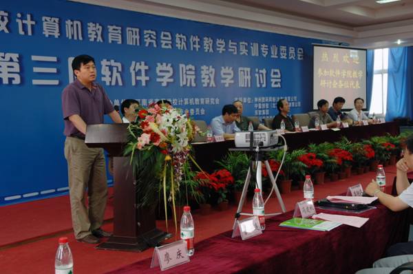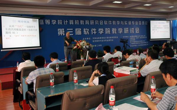 7月3日,河南省第三届软件教学研讨会在我校北区基础实验楼九楼会议室举行,来自全省42所高校的太阳成集团tyc33455院长和实习实训主任,以及27家企业等代表160多人汇集我校。会议由河南省高等学校计算机教育研究会副理事长、郑州大学王世卿教授主持。
