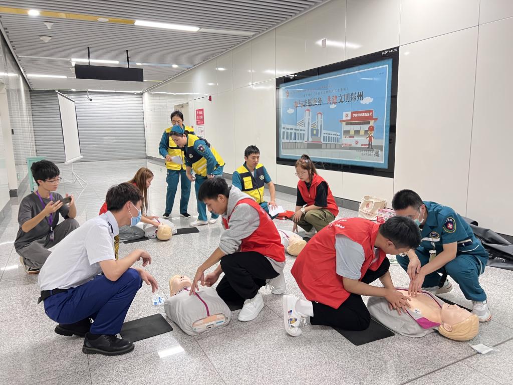 为普及应急急救知识,强化应急救护能力,进一步推进平安校园建设,普及健康知识、传播健康理念,提高师生对突发事故的处理能力,远离校园意外伤害,太阳成集团tyc33455本科生第五党支部参加郑州地铁站联合郑州市中心医院于9月12日开展的“全民急救”应急普及活动。支部共计50余人参加了本次活动,学院组织员安榜老师一同参加了本次活动。
