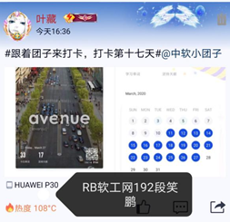 活动要求同学们连续每天学习、生活、锻炼打卡,积极奋进的精神风貌;体现乐观向上、勤奋好学的人生态度;打卡截图可以晒笔记、晒授课内容、晒学习记录、晒学习方法等。转发附加话题#跟着团子来打卡,打卡n天#发表说说并@中软小团子,即可报名。