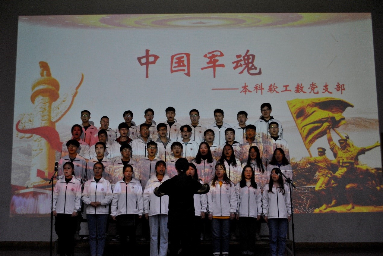 七点十分,大合唱比赛开始。第一首歌曲是由本科软工数党支部带来的《中国军魂》。