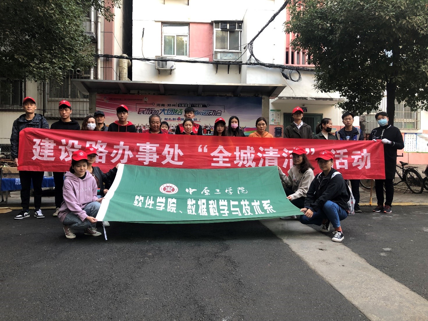 为进一步改善中原校区的环境面貌,营造优美洁净的生活环境,给中原校区师生及家属院居民创造一个干净整洁的家园,2019年11月15日上午,软工数党支部与软工移党支部各有五名学生代表志愿参加建设路办事处“全城清洁”活动。