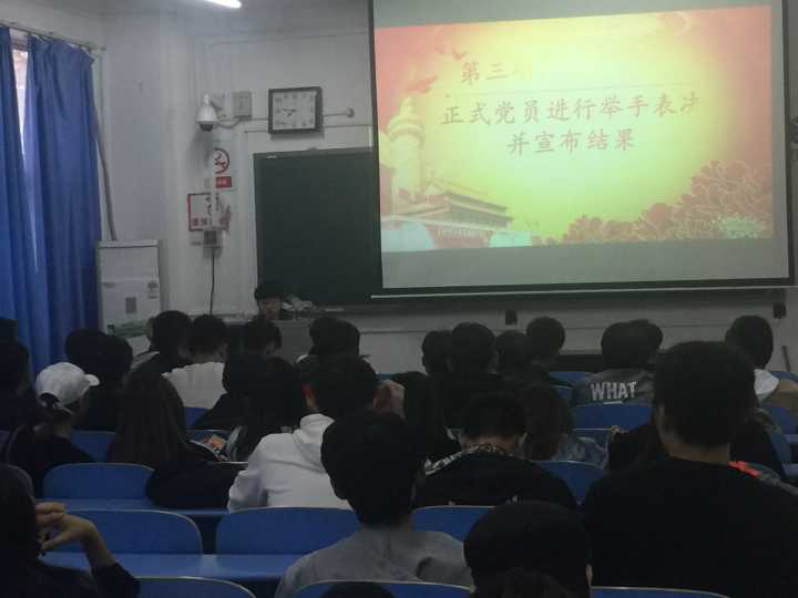 本次选举大会本着公平公正的原则,择优秀的同学进行选举。大会开始第一项,全体起立,奏国歌。大会进行第二项,由入党申请人简单介绍自身情况。入党申请人在此都谈到了自己对党的认识,并都为能成为其中的一员而努力。
