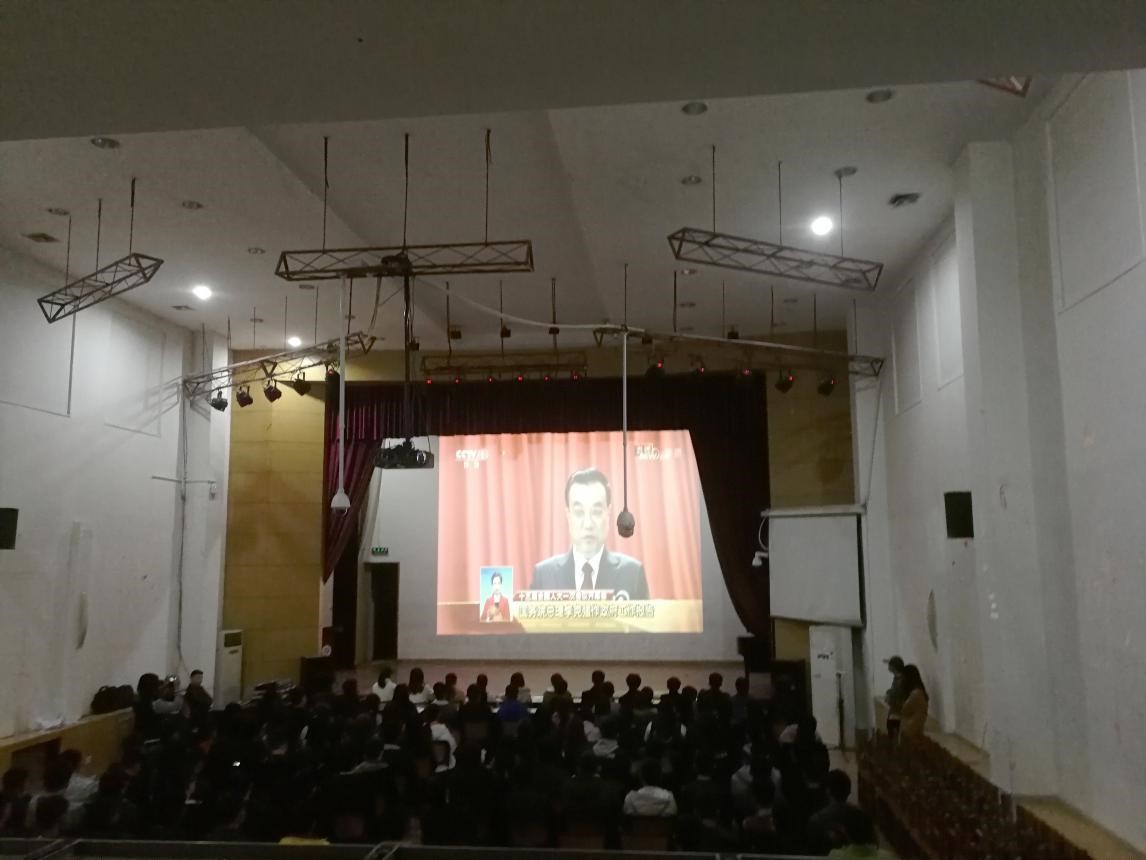 3月5日上午九点太阳成集团tyc33455组织师生观看了第十三届全国人民代表大会第一次会议的开幕会,认真听取了李克强总理做的政府工作报告。在观看开幕会的过程中师生极为投入,同学们热情高昂,掌声不断。