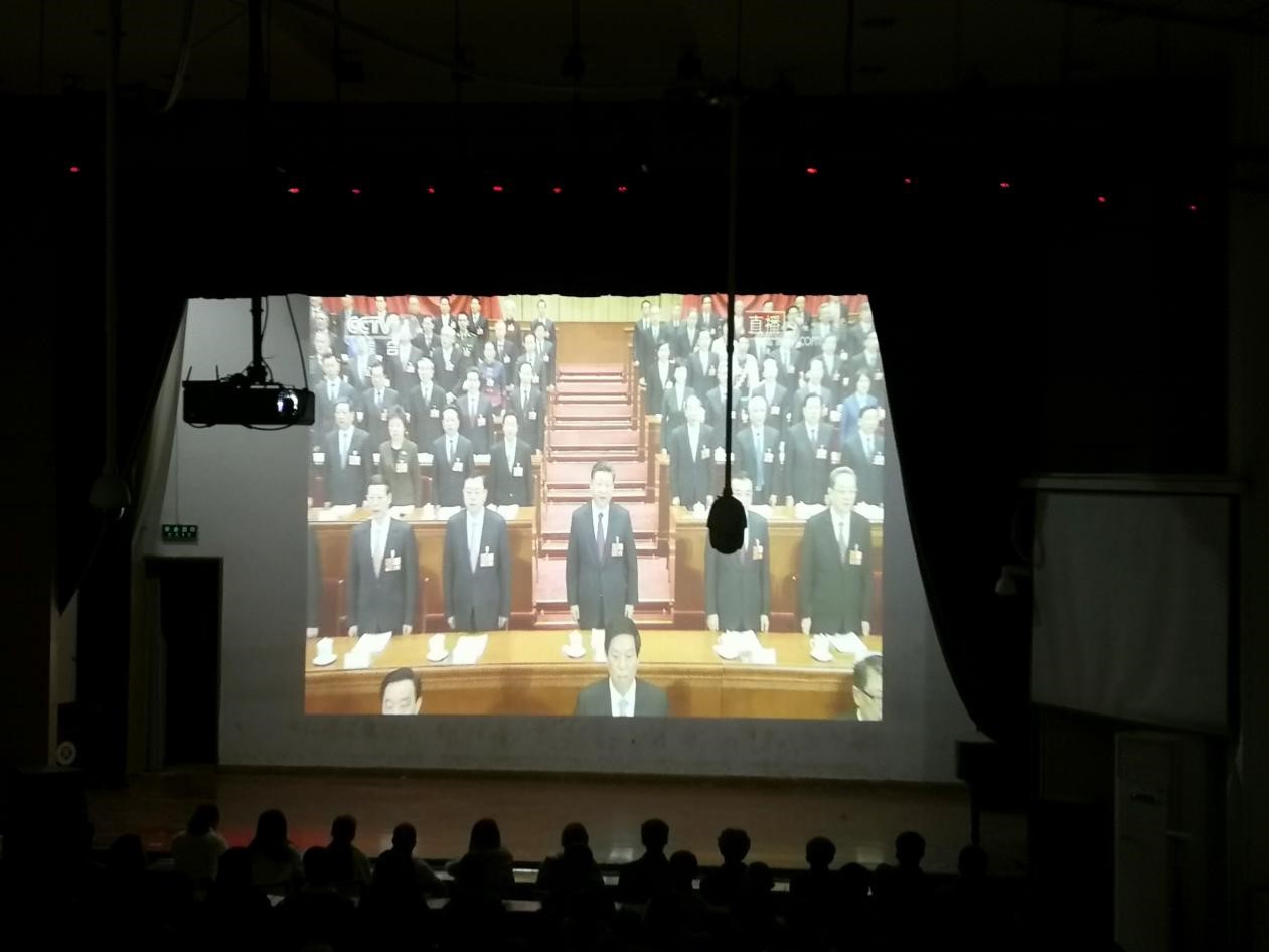 政协第十三届全国委员会第一次会议和第十三届全国人民代表大会第一次会议是全面贯彻党的十九大精神开局之年的历史性盛会,将通过法定程序,使党的主张成为国家意志,把党的方略铺展为改革发展实践,把党的目标熔铸于亿万人民的共同奋斗。在这个关键性的时刻,太阳成集团tyc33455组织师生观看两会开幕会,使师生对党的认识更为具体。